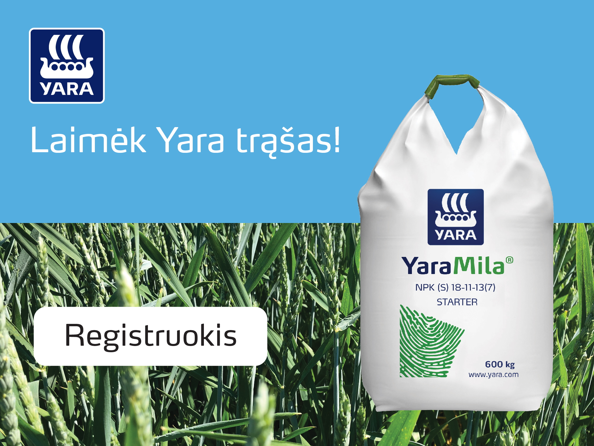 Spausk ant paveikslėlio, registruokis iki spalio 15d. ir sek mus Facebooke, kur tiesioginės transliacijos metu sužinosi, ar esi vienas iš 5 laimingųjų, kuriems atiteks po 600kg YaraMila NPK(S) 18-11-13(7) trąšų!