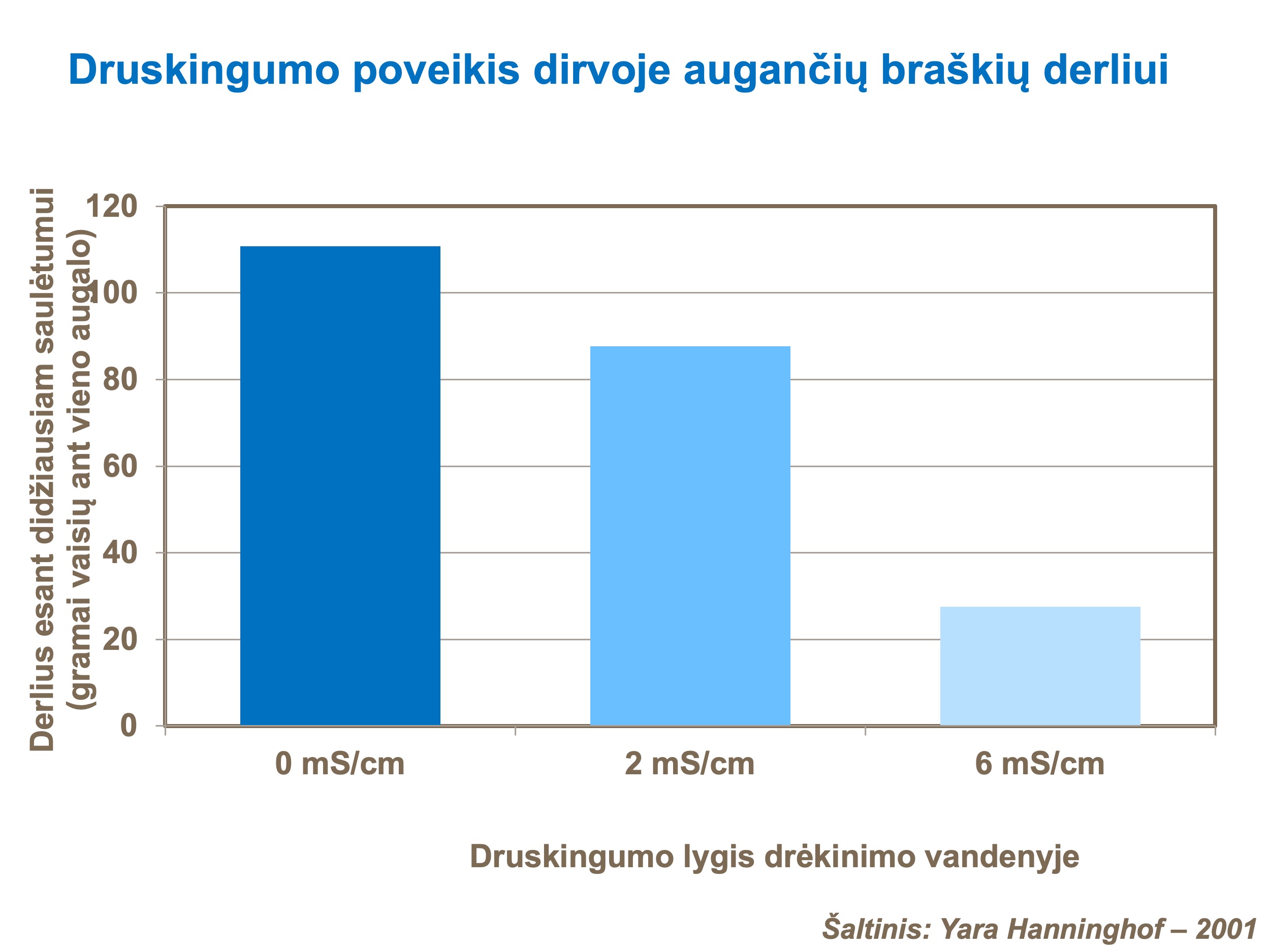 Druskingumo lygis šaknų zonoje yra tiesiogiai susijęs su vandens kokybe, tręšimo dažniu ir drėkinimo gyliu.