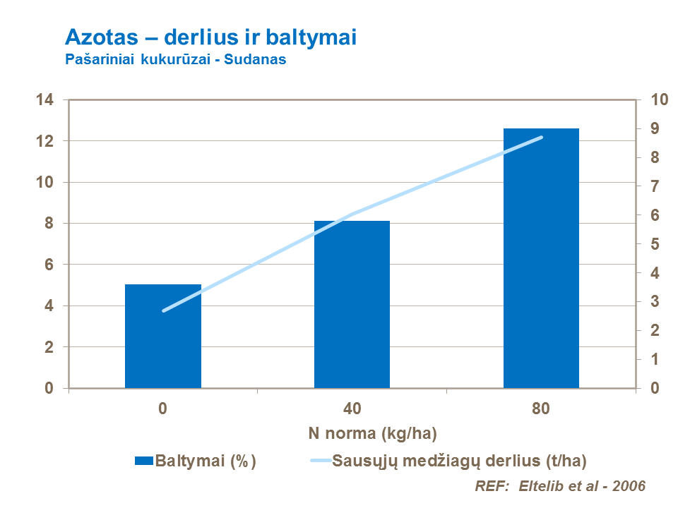 Siekiant optimizuoti kukurūzų pasėlių augimą ir vystymąsi ir užtikrinti, kad augalai gerai įsisavintų baltymus tiek grūduose, tiek silosui skirtoje žaliojoje masėje, azotinių trąšų normos turi būti gerai subalansuotos ir pakankamai didelės.