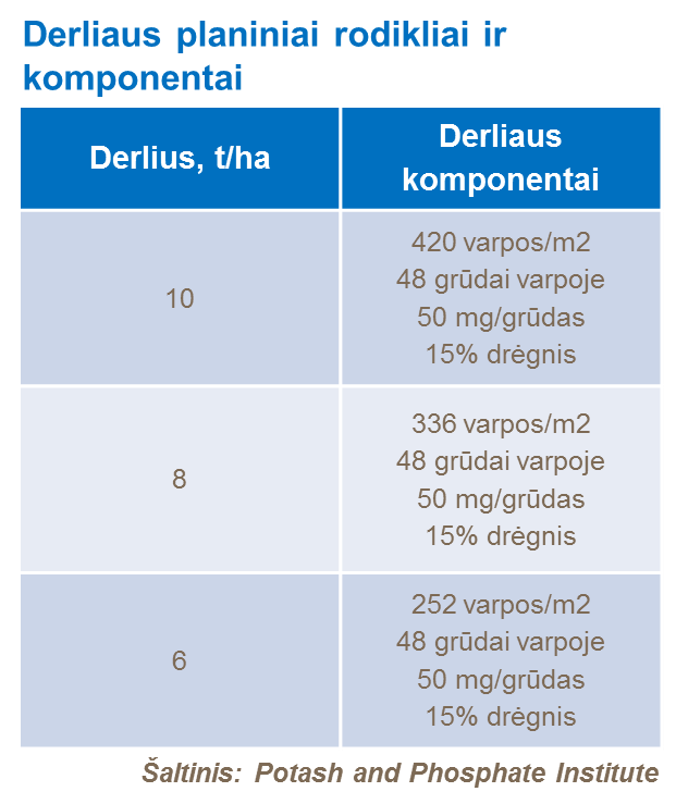 Grūdų formavimosi, pildymosi ir brendimo tarpsniais kviečių augalams yra reikalingi sveiki žali lapai, kad bręstantys grūdai būtų nepertraukiamai aprūpinami fotosintezės produktais. Siekiant maksimaliai padidinti produktyvių varpų skaičių, naudinga pasėlius patręšti. Azoto kiekį lapuose reikia išsaugoti iki žydėjimo tarpsnio pradžios. Be to, reikia atminti, kad optimalaus derlingumo užtikrinimui yra reikalingos tokios maisto medžiagos kaip fosfatai, magnis ir boras.