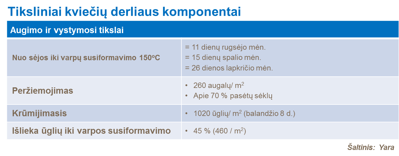 Tai leidžia kiek įmanoma sumažinti kenksmingą poveikį aplinkai ir tuo pačiu maksimaliai padidinti auginamų pasėlių derlingumą. Tręšimo laiką reikia suderinti su didžiausiu kviečių mitybos elementų poreikiu. Didžiausias mitybos elementų poreikis pasireiškia ankstyvuosiuose kviečių vystymosi tarpsniuose. Tuo laikotarpiu kviečiams labiausiai reikalingi yra makroelementai (azotas, fosforas, kalis) ir mikroelementai (magnis, kalcis, siera).