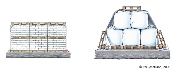 Stabilumo ir saugumo sumetimais, rekomenduojama didmaišius laikyti sukrautus piramidės forma. Stirtos aukštis su padėklais neturėtų viršyti trijų (3) padėklų eilių, priklausomai nuo produkto, padėklų stabilumo bei krovimo įrenginio tipo.