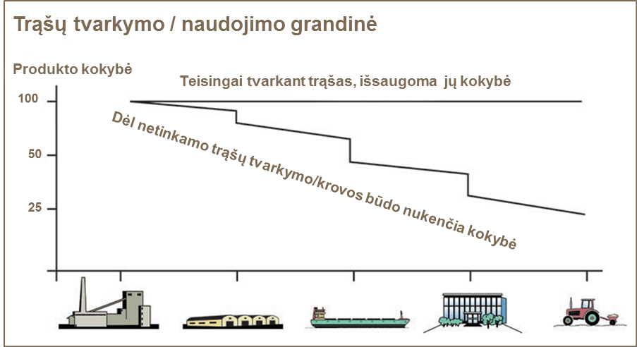 Kol trąšų produktai pasiekia galutinį vartotoją, jiems tenka pereiti daugybę etapų ir patirti mechaninio pobūdžio stresus. Labai svarbu, kad per visus produkto tiekimo galutiniam vartotojui etapus, produktas išliktų kokybiškas ir tinkamas tiesioginiam naudojimui, kad jo kokybė neturėtų įtakos pasėlių derlingumui.