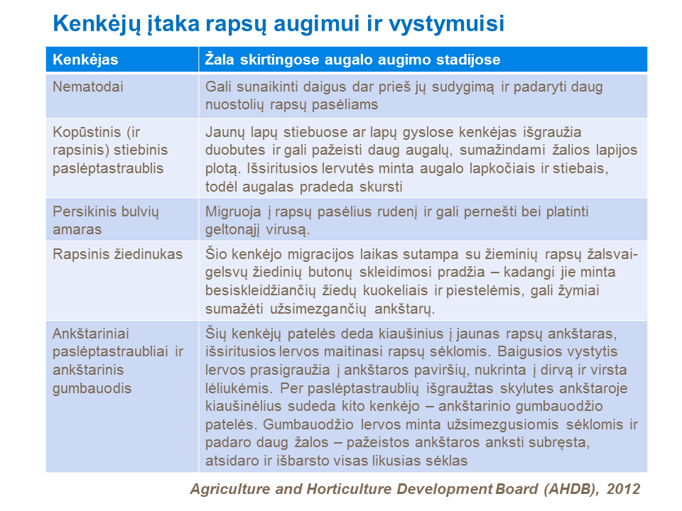 Šie kenkėjai žieminių rapsų pasėliams gali padaryti daug žalos ir nuostolių: