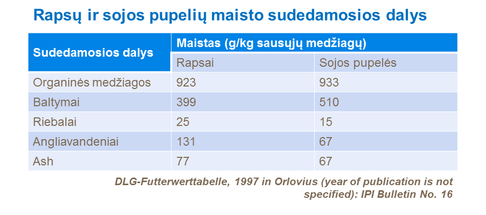 Jie daugiausiai naudojami stambiųjų galvijų pašarams, tačiau tinka viščiukams ir kiaulėms. Miltuose turi būti nedidelis gliukozinolatų kiekis, kadangi galvijams ir kiaulėms jie gali sutrikdyti medžiagų apykaitą. Rapsų pasėliai, kaip naudingieji pasėliai, taip pat auginami ekologiškoms trąšoms (bio mėšlui) ir pašarų gamybai.